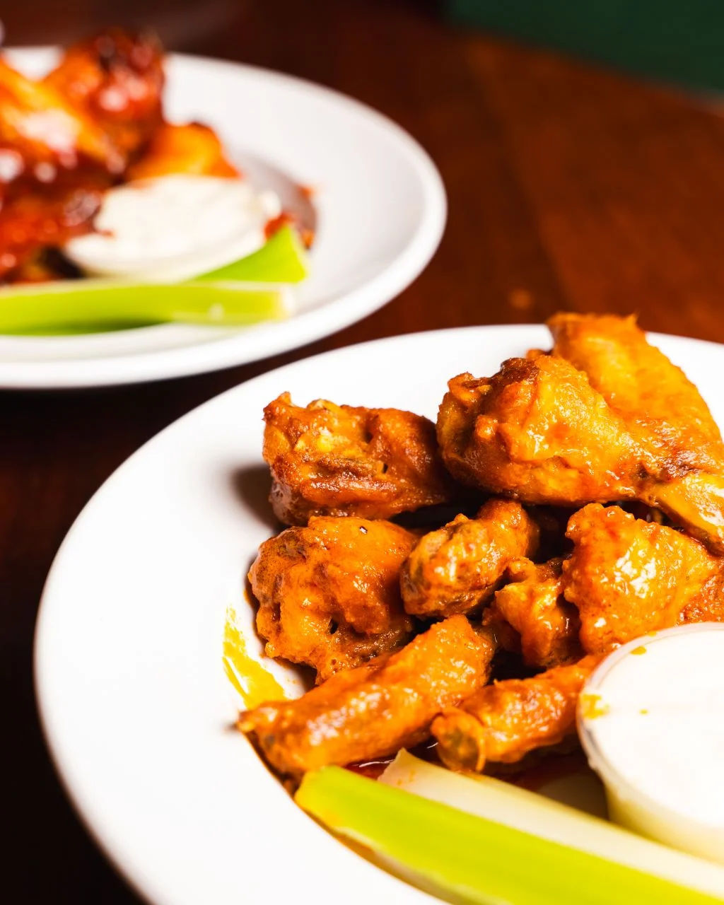 Our ever popular wings served with homemade blue cheese dip, choose from Hot n' Spicy or BBQ Sauce (2/3/7/10/14)